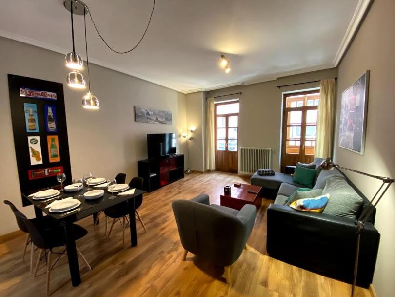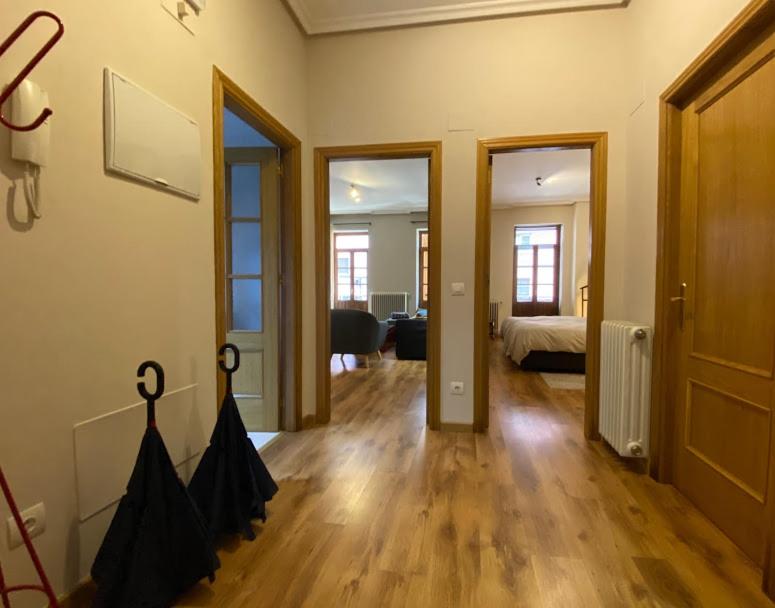 Situado a menos de 200 metros del Monasterio de Las Pelayas y de la calle Gascona (El Bulevar de la Sidra) y a 350 de la Plaza de la Catedral, en un edificio totalmente rehabilitado con una fachada tradicional asturiana. El piso es muy amplio (58 m2 útiles) y techos altos y consta de un gran salón con sofá cama doble (135 cm), un dormitorio con dos camas individuales (90 cm) y una cama hinchable extra individual. Baño completo y amplia cocina.
