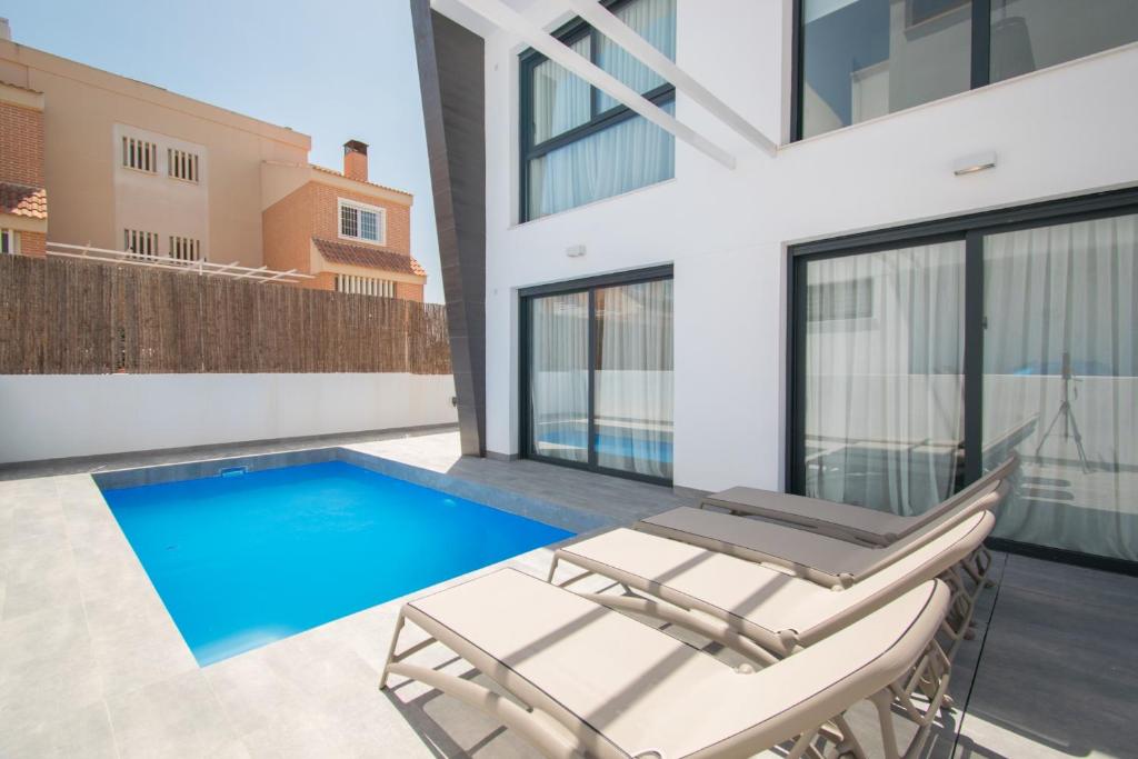 La 205 Luxury Gran Villa - Alicante Holiday se encuentra en Gran Alacant, a 2,7 km de la playa del Carabassí, y ofrece alojamiento con WiFi gratuita, aire acondicionado y terraza. Esta villa cuenta con piscina privada, jardín y aparcamiento privado gratuito.