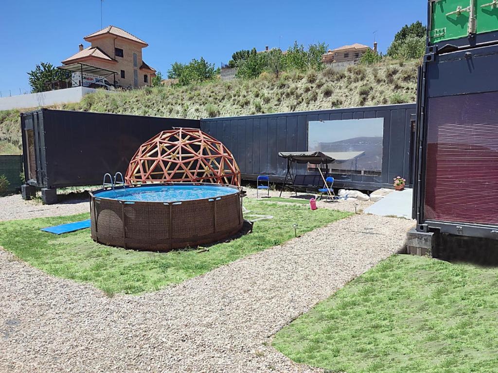 El ACOGEDOR CONTENEDOR MARITIMO HECHO UN HOGAR... Ofrece alojamiento con terraza, jardín y piscina exterior de temporada. El establecimiento tiene vistas a la montaña y al jardín y está a 37 km de la estación de tren de Atocha. Tienda de lujo con acceso a un patio, aire acondicionado, cocina totalmente equipada y TV de pantalla plana. La tienda de lujo incluye toallas y ropa de cama. Este tented camp se encuentra a 38 km del Museo Reina Sofía y de la Puerta de Toledo. El aeropuerto más cercano es Adolfo Suárez Madrid-Barajas, a 47 km del ACOGEDOR CONTENEDOR MARITIMO HECHO UN HOGAR..., ofrece servicio de enlace con el aeropuerto por un suplemento.
