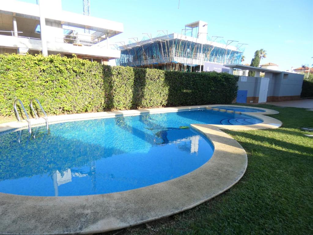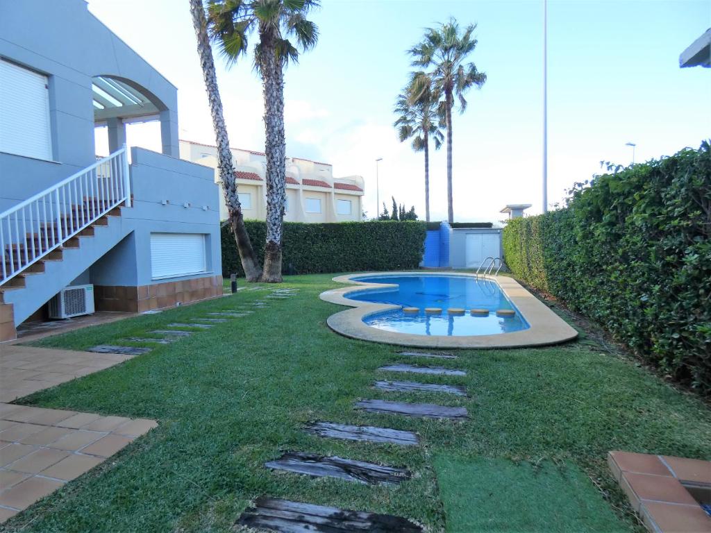 Casa de vacaciones moderna y acogedora con piscina comunitaria en Oliva, en la Costa Blanca, España para 6 personas. La casa está situada en una zona de playa y residencial, cerca de un campo de golf, restaurantes y bares y tiendas, a 50 m de la playa de Oliva Nova y a 0,05 km de Mar Mediterráneo. La casa tiene 3 dormitorios, 2 cuartos de baño y 1 aseo para invitados, distribuidos en 3 plantas. El alojamiento ofrece privacidad, un jardín comunitario con césped y árboles y unas maravillosas vistas a la bahía, a la playa y al mar. El confort y la cercanía de la playa, sitios para salir, actividades deportivas, lugares para ir de compras, lugares de interés y cultura hacen de esta casa de vacaciones un alojamiento ideal para pasar sus vacaciones en España con familia o amigos.