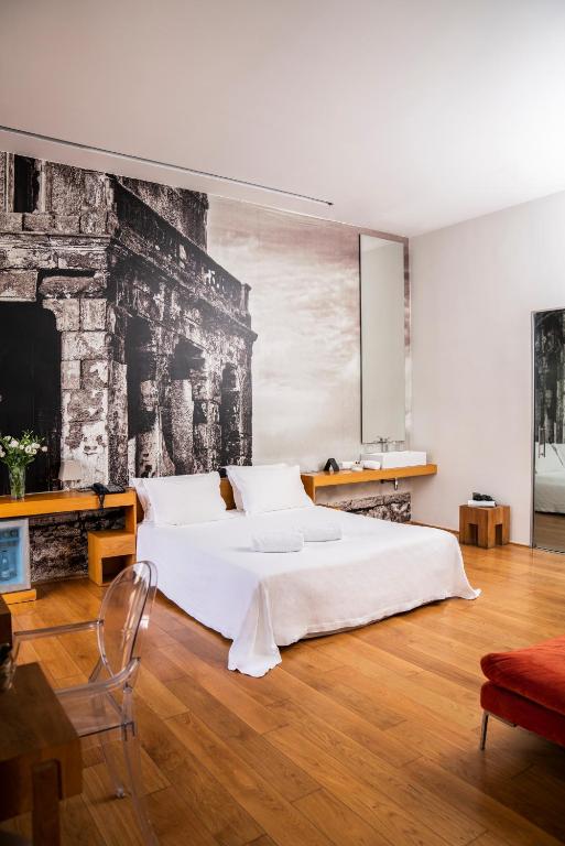 Las habitaciones presentan una decoración moderna con toques históricos. Disponen de suelo de parquet, vinilos fotográficos de gran tamaño, aire acondicionado, TV de pantalla plana, ducha de efecto lluvia y carta de almohadas.