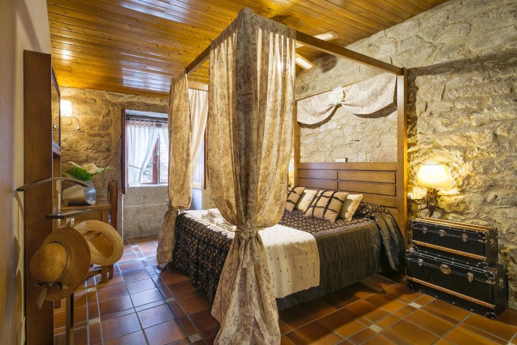 Esta casa rural cuenta con una piscina al aire libre y bañera de hidromasaje. Ofrece bicicletas de uso gratuito y elegantes habitaciones con conexión Wi-Fi gratuita. El puerto deportivo de Rianxo está a 15 minutos en coche.