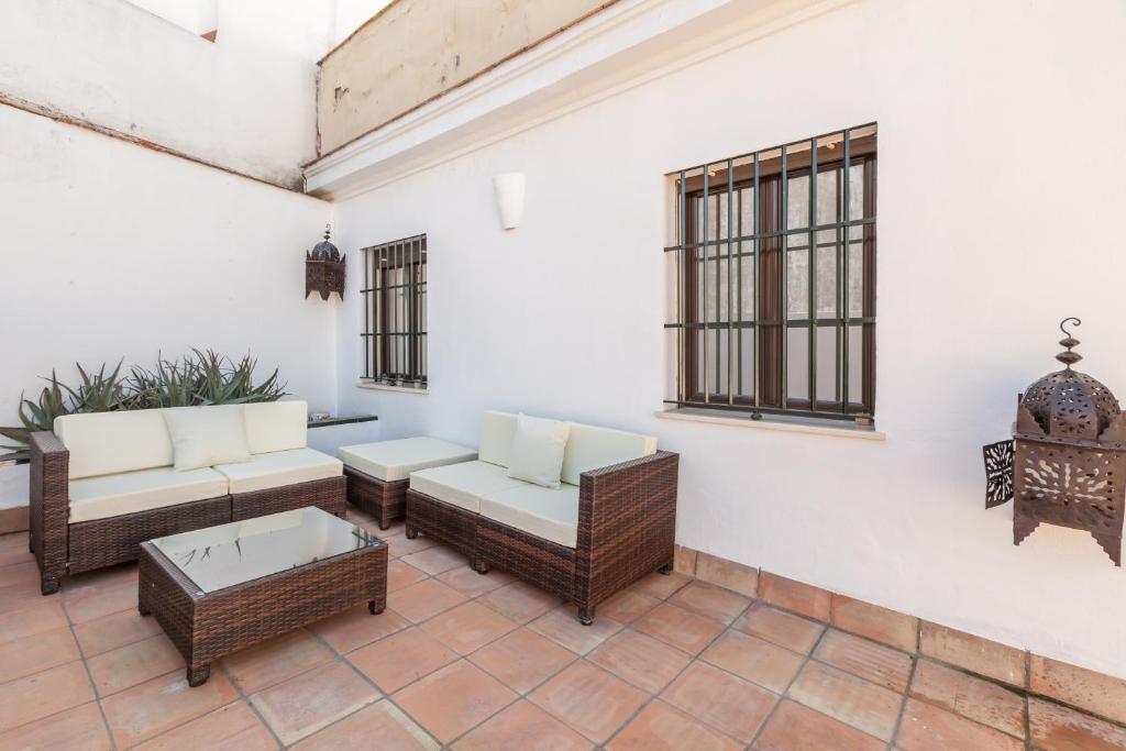 El ALFALFA CABALLERIZAS dispone de patio con vistas al jardín, jardín y terraza. El 2 A se encuentra en Sevilla, cerca de la Casa de Pilatos y a 2,3 km de la plaza de España. Este alojamiento con aire acondicionado está a 1,4 km del barrio de Santa Cruz y ofrece aparcamiento privado y WiFi gratuita.