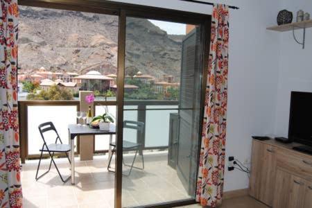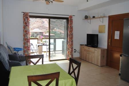 El apartamento se encuentra a 700 metro de la playa y del puerto turístico de Playa de Mogan "la Venecia de Canaria". Consta de 2 habitaciones con cama doble de 150 y 160, la cocina estas equipada con horno,lavavajillas,horno microonda,cafetera americana y tostadora. Hay WiFi gratuito y aparcamiento privado. Tiene un balcón con vista a la montaña y el mar al fondo.