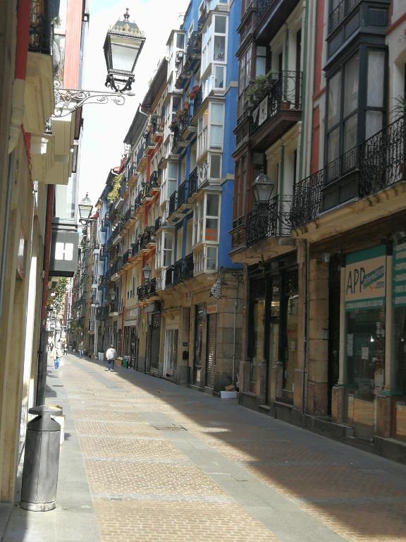 su situacion en pleno casco viejo , pero en una calle tranquila y muy cerca de los bares de pintxos