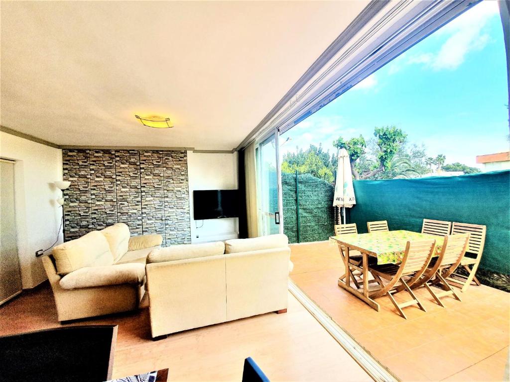 Es un apartamento perfecto para grupo o parejas, pueden dormir 6 personas,2 x habitación y 2 en salón que es grande. Es planta baja,2 terrazas, a la entrada y cruzando la casa que da a un jardín comunitario con césped, campo de fútbol, piscina, parque infantil, jardín muy grande para pasear y se puede salir con mesas y sillas en la misma puerta a comer sin que nadie te moleste y hacer siesta en el césped.La estancia es muy agradable por los ventanales grandes y entra mucha luz y si se abren con la puerta de entrada de la casa,corre una brisa muy agradable.Tiene parking comunitario privado en la puerta y garaje.Puedes hacer senderismo o relajarte en el interior de la urbanización.Es perfecto para desconectar de la rutina y disfrutar de la tranquilidad. Al estar cerrada la urbanización y ser un bajo, viene muy bien para familias con niños porque se les controla desde la casa.Está cerca de rutas de montaña GR andando y a 10 min de la playa en coche.Perfecto para pasar un finde romántico y desconectar.En verano la zona es más vacacional.Todos los martes hay mercadito en el pueblo.El apartamento está completamente acondicionado para invierno y verano.La cocina está equipada al completo.