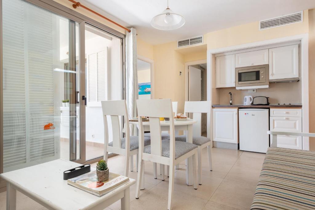 El Posidonia ofrece vistas al mar y alojamiento con balcón y hervidor de agua a unos 200 metros de la playa de Cala Marcal. Se encuentra a menos de 1