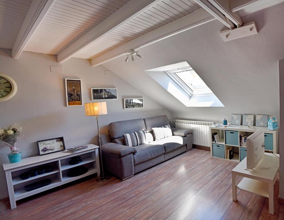 Apartamento abuhardillado con encanto, completamente reformado, en un tranquilo edificio a tan sólo 5 minutos caminando del centro de la ciudad de Jaca. Está formado por un amplio salón cocina con salida a una pequeña galería, habitación principal con vestidor y perfecta capacidad para tres personas adultas como máximo. También dispone de un cuarto de baño con ducha, todo situado en la misma planta. Completamente equipado para garantizar una perfecta estancia en la ciudad de Jaca y visitar las principales atracciones turísticas de la provincia de Huesca.