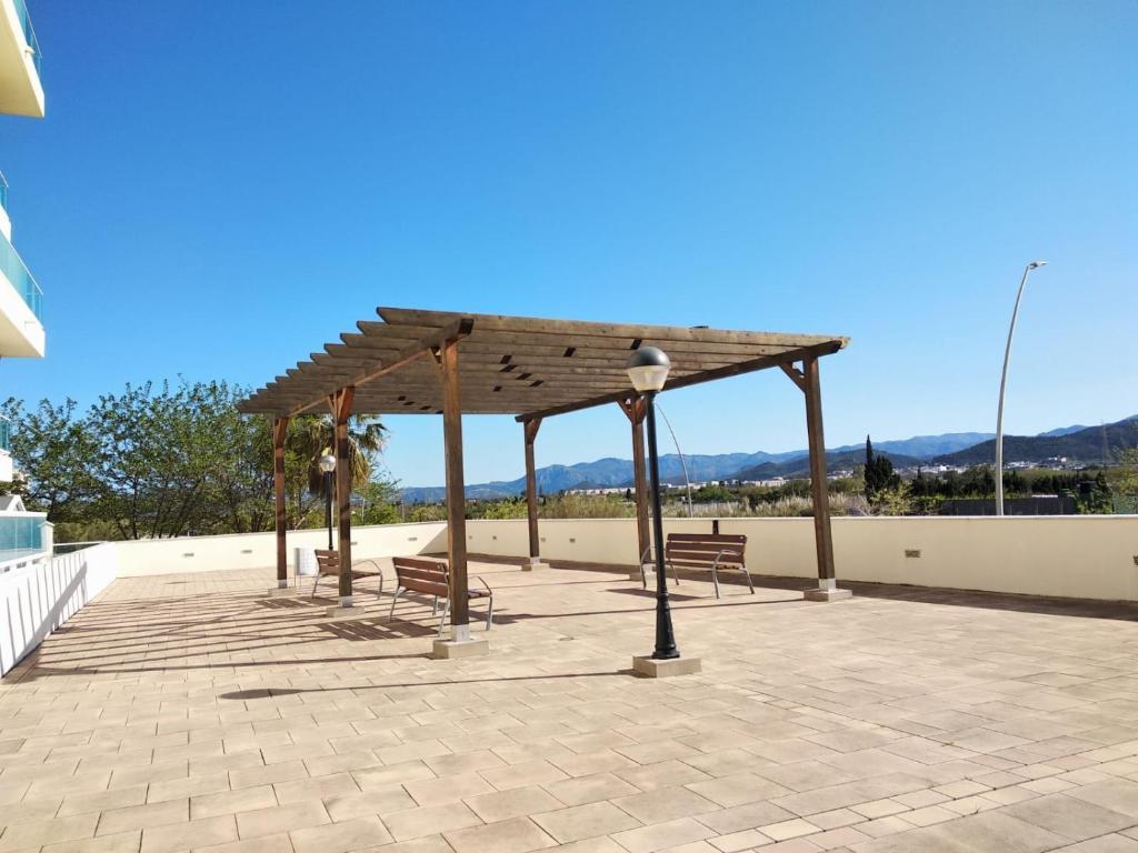 El apartamento tiene terraza. El Apartamento nuevo en la playa de Piles cuenta con piscina al aire libre y jardín.