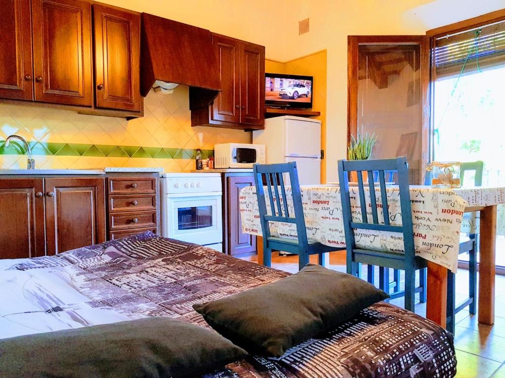 Este apartamento dispone de sala de estar y cocina totalmente equipada con nevera y fogones.