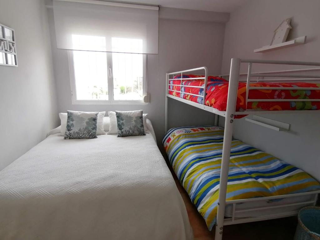 MUY BONITO APARTAMENTO EN PRIMERA LINEA DE PLAYA CON GARAJE, ASCENSOR Y PISCINA EN VERANO. EL APARTAMENTO ESTA TOTALMENTE AMUEBLADO CON MOBILIARIO NUEVO. TIENE CAMA 135 DE MATRIMONIO Y UNA LITERA EN EL DORMITORIO, Y SOFA CAMA PARA 2 PERSONAS EN EL SALON. NO SE PERMITEN MASCOTAS Y TAMPOCO SE PUEDE FUMAR DENTRO. PISO EN CUARTA PLANTA CON VISTAS A LA CIUDAD.