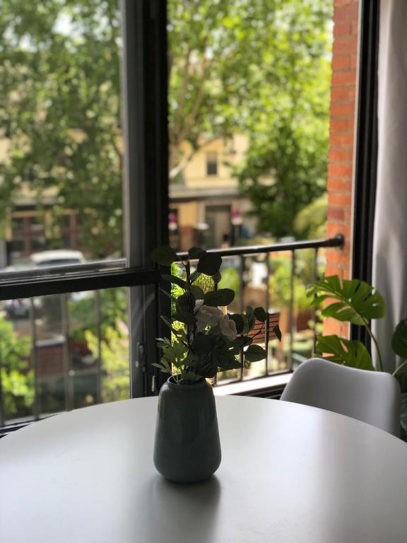 El apartamento tiene 2 dormitorios, 1 baño, ropa de cama, toallas, TV de pantalla plana, zona de comedor, cocina totalmente equipada y balcón con vistas al jardín.