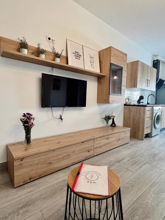 El apartamento cuenta con balcón, vistas a la ciudad, zona de estar, TV de pantalla plana, cocina totalmente equipada con nevera y horno y baño privado con ducha y artículos de aseo gratuitos. Hay fogones, tostadora, cafetera y hervidor de agua.