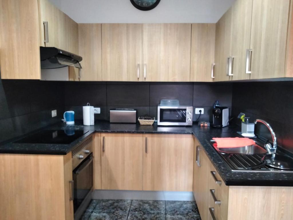 El apartamento cuenta con 2 dormitorios, TV de pantalla plana, lavadora, baño con ducha y cocina equipada con microondas y nevera.