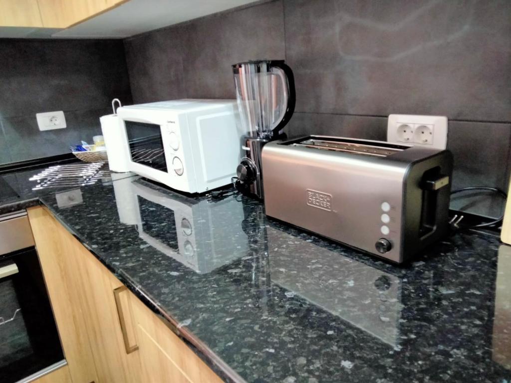 El apartamento cuenta con 2 dormitorios, TV de pantalla plana, lavadora, baño con ducha y cocina equipada con microondas y nevera. Se proporcionan toallas y ropa de cama.