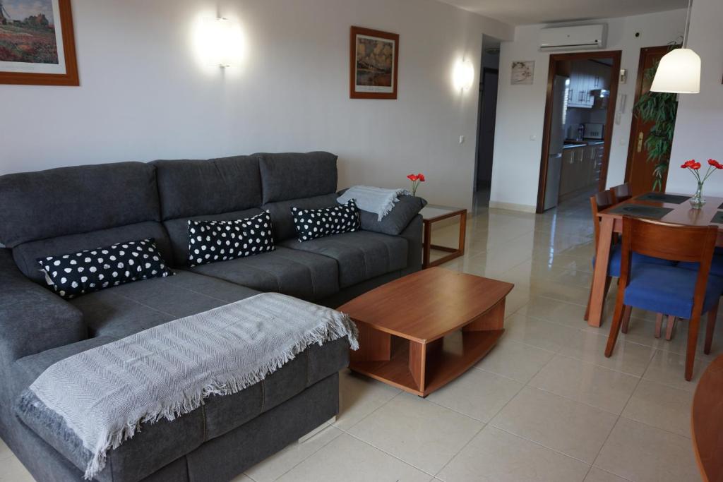 El apartamento está equipado con 3 dormitorios, 2 baños, ropa de cama, toallas, TV de pantalla plana vía satélite, zona de comedor, cocina totalmente equipada y balcón con vistas a la piscina.