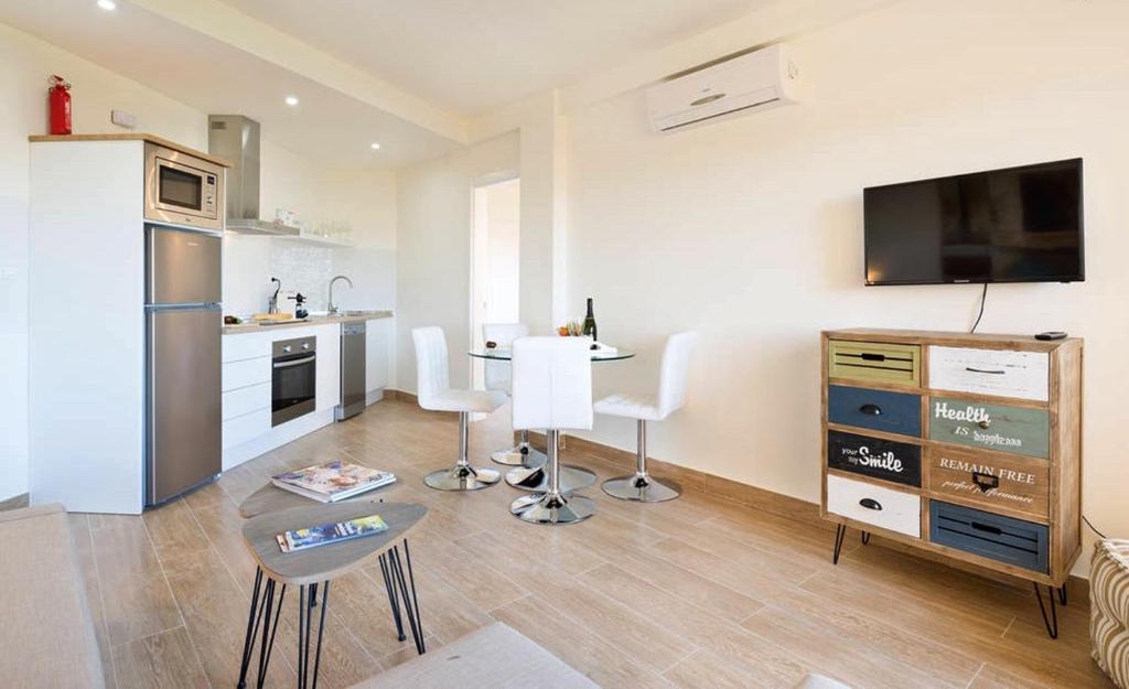 El apartamento tiene 1 dormitorio, sala de estar y cocina con lavavajillas. Incluye TV de pantalla plana.