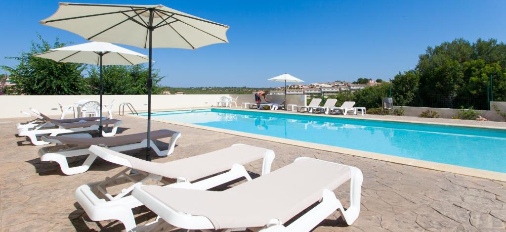 El apartamento cuenta con piscina al aire libre y terraza.