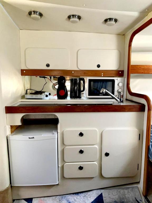 Cozy private two rooms yacht in Barcelona - boat in Port Forum ofrece terraza y vistas al mar. Está en Barcelona, a 6 min a pie de Platja del Fòrum y a 1,5 km de Platja del Litoral. Hay wifi gratis en todo el alojamiento y parking privado en el propio alojamiento. Este barco con aire acondicionado se compone de 2 dormitorios independientes, una sala de estar, una cocina totalmente equipada con nevera y microondas, y 1 baño. Hay toallas y ropa de cama en el barco. Platja de Llevant está a 1,7 km del alojamiento, y Platja de la Mora está a 2,2 km. El aeropuerto más cercano (Aeropuerto de Barcelona - El Prat) está a 19 km.
