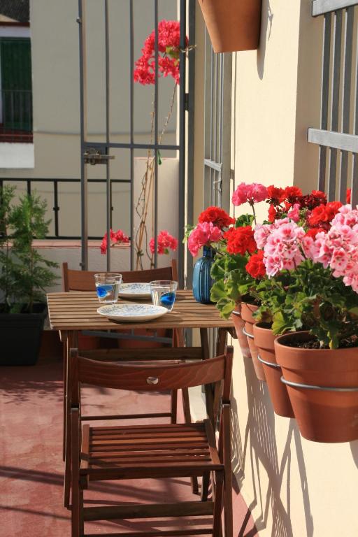 Pros: Friendship hostess. In old part of Sevilla. Close to main touristic places. Lovely sitting/dining area on the roof. Calm neighborhood. 20 minutes by foot to train station.