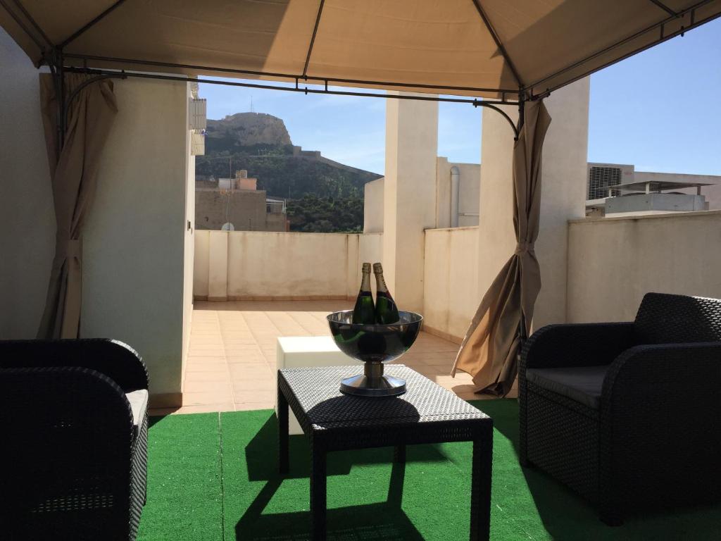 Apartamento con dos alturas , tiene una terraza con vistas al Castillo de Santa Bárbara privada en la planta superior a la que se accede desde el propio apartamento.