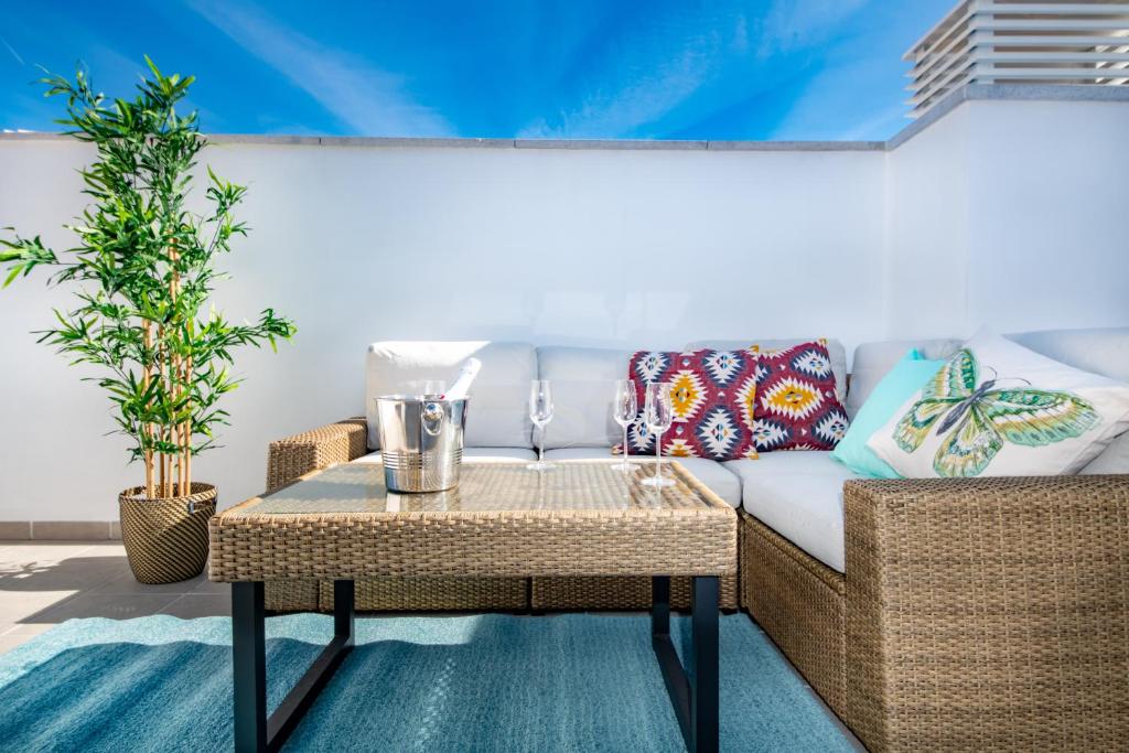 El Ático Penthouse Bajondillo 2 bedrooms se encuentra justo en el centro de Torremolinos, a poca distancia de la playa de La Carihuela y Skal International, y ofrece conexión WiFi gratuita, aire acondicionado, microondas y hervidor de agua. Se encuentra frente a la playa y ofrece acceso a un patio.
