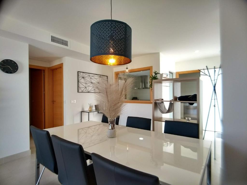 Au pied d'Aguilon golf 4203, que cuenta con piscina de temporada al aire libre, terraza y restaurante, ofrece alojamiento en San Juan de los Terreros con wifi gratis y vistas al mar. El alojamiento ofrece vistas a la piscina y al jardín y está a 39 km de Marina Golf Mojácar. Este apartamento con aire acondicionado consta de 2 dormitorios, una sala de estar, una cocina totalmente equipada con nevera y cafetera, y 2 baños con ducha y secador de pelo. Para mayor comodidad, el alojamiento puede ofrecer toallas y ropa de cama por un suplemento. En el apartamento, la clientela puede usar la zona de juegos infantil. Club de golf Valle del Este está a 29 km del alojamiento, y Marina Golf-Mojácar está a 35 km. El aeropuerto más cercano (Aeropuerto internacional Región de Murcia) está a 91 km.