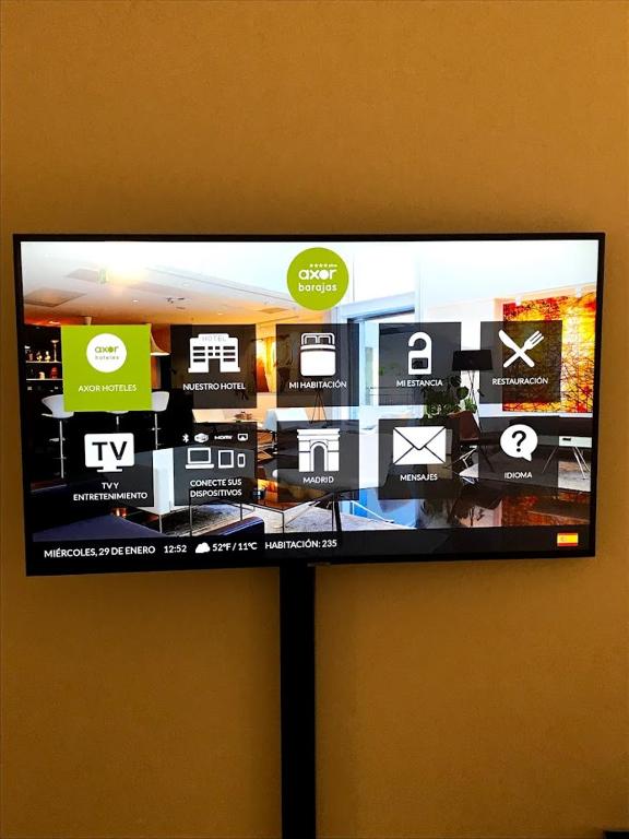 Todas las habitaciones del Axor Barajas disponen de aire acondicionado, TV inteligente de 43 pulgadas con dispositivo Chromecast integrado y suelo de madera. Las habitaciones son amplias y luminosas e incluyen calefacción. También están insonorizadas. Cuentan con caja fuerte, minibar y escritorio.