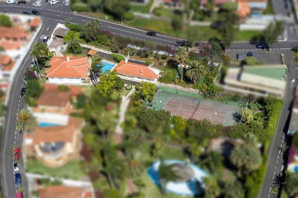 Balcón del Teide es una finca única ubicada en la zona de Las Cuevas a las afueras de la villa histórica de La Orotava en la isla de Tenerife. Dentro de un terreno ajardinado con palmeras y todo tipo de flora de casi 2.800m2 se encuentran dos viviendas alrededor de una piscina y patio con barbacoa, también pueden disfrutar de una cancha de tenis/multiuso. La villa principal cuenta con salón-comedor, sala de estar, cocina y 3 habitaciones y 3 baños mientras que la segunda casa cuenta con salón-cocina-comedor, 1 habitación y 1 baño; pueden alojarse un máximo de 6 y 4 personas respectivamente, ideal para dos familias que quieren irse de vacaciones juntas.