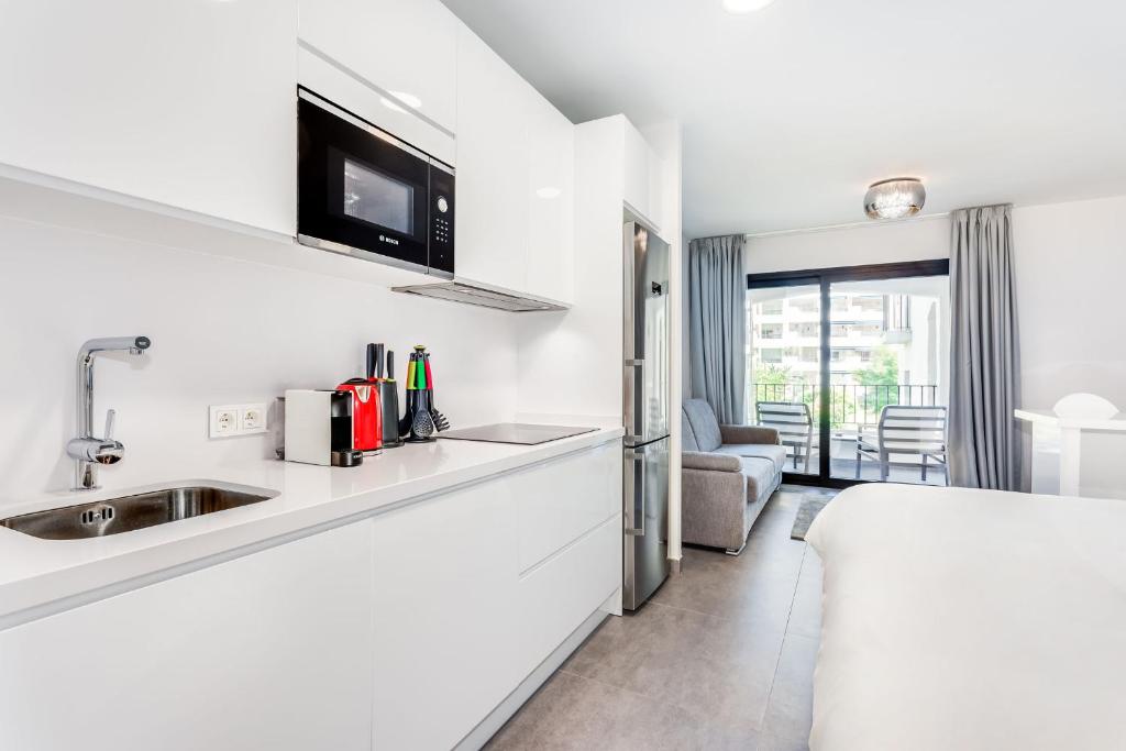 By RIVA - Exclusive, Contemporary Studio in Puerto Banus Gardens, que cuenta con piscina al aire libre, jardín y terraza, ofrece alojamiento en Marbella con wifi gratis y vistas al jardín. Hay parking privado en el propio alojamiento. Este apartamento tiene aire acondicionado y dispone de 1 dormitorio y 1 baño con bidet, ducha y secador de pelo. La cocina está equipada con nevera, microondas y fogones, además de cafetera y hervidor. Cerca del alojamiento hay puntos de interés como Playa Nueva Andalucía, Praia do Rio Verde y Playa Río Verde. El aeropuerto más cercano (Aeropuerto de Málaga) está a 60 km del alojamiento.