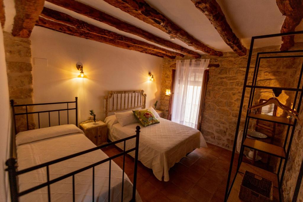 La bella casa rural Ca Lázaro, situada en Bot, a 15 minutos en coche del parque natural Els Ports, presenta paredes de piedra y alberga una terraza am