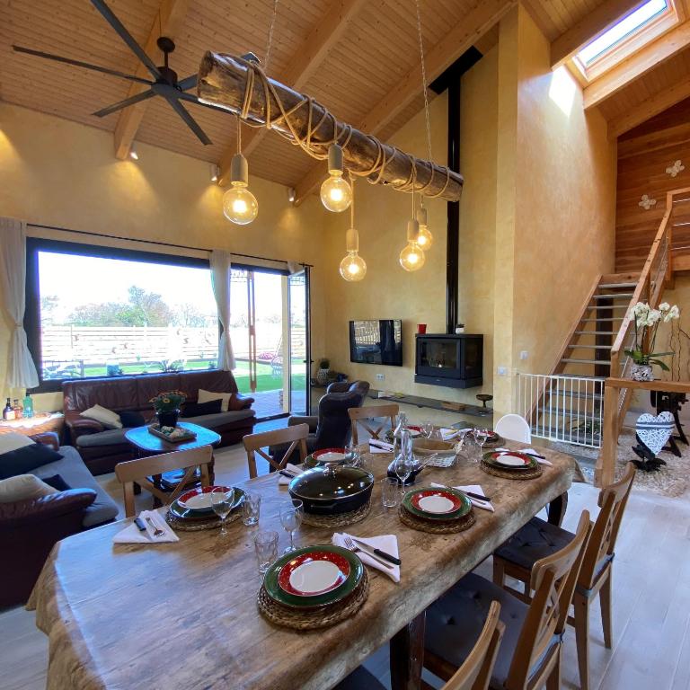 Una casa construida pensando en la salud de los usuarios, construida con materiales ecológicos como cerámica, cal, madera y corcho. Sistemas de climatización respetuosos con el medio ambiente. Los niños disfrutan mucho del parque vallado, con columpios y tobogán. La piscina de agua salada respeta el pelo y la piel de toda la familia.