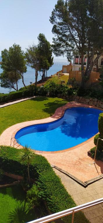 El MSJ 56 Acogedor apartamento en Marina San Jordi ofrece vistas al jardín y alojamiento con piscina al aire libre y balcón a unos 500 metros de la pl