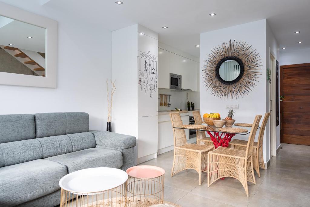 Vivienda dúplex a 40 metros de la emblemática playa de las canteras! Vivienda en la sexta y última planta, con ascensor, en uno de los edificios más nuevos y cuidados de la zona. Con una decoración minimalista con pinceladas acogedoras, consta de dos plantas, dos habitaciones, cocina - salón, baño y un aseo. El alojamiento puede ser alquilado con una habitación para dos huéspedes, o con las dos habitaciones para 3 o 4 huéspedes. Cocina equipada con microondas, horno, placa de inducción, lavavajillas, nevera, lavadora y secadora. La LAVADORA Y LA SECADORA están dentro En el salón, se dispone con un lugar de trabajo para portátiles, conexión gratuita de wifi y de televisión con Smart TV de 55”. Habitación principal con cama de 1,60 por 2 metros con colchón de látex con muelles visco-elástico. Segunda habitación, con dos camas individuales de 80 por 2 metros a la misma altura. Opcional alquiler de plaza de aparcamiento. Acceso al trastero, situado en el mismo edificio para guardar bicicletas, tablas de surf, etc. La relación con los huéspedes será cercana, a demanda y por supuesto, durante la estancia, disponible mediante móvil, 24 horas para cualquier tipo de incidencia.