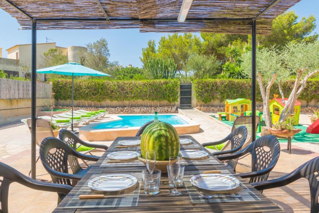 El Can Cantari es un chalet con jardín situado en Sa Coma. Dispone de patio, porche y zona de barbacoa.