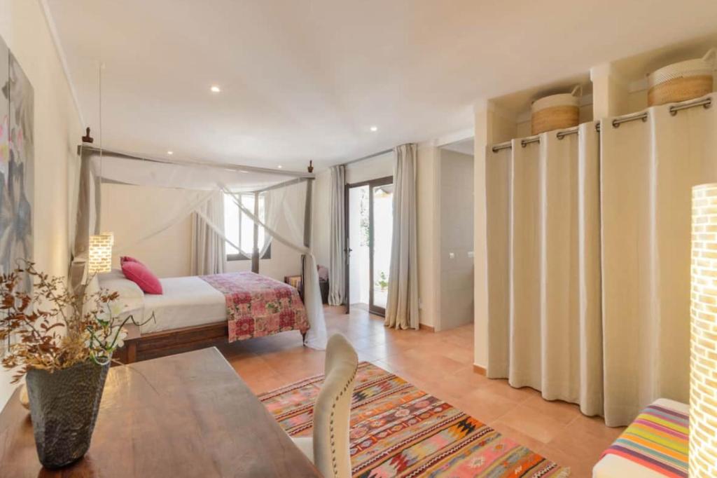 El aeropuerto más cercano es el de Ibiza, ubicado a 25 km de la villa.