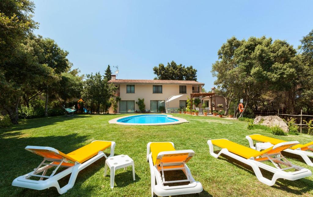 La villa cuenta con piscina al aire libre, parque infantil y solárium.