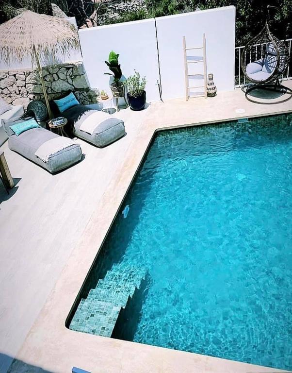 La Villa mit privatem Pool cuenta con piscina al aire libre, jardín y terraza. 10 Minuten vom Strand mit El kostenlosen WiFi ofrece alojamiento en Ben