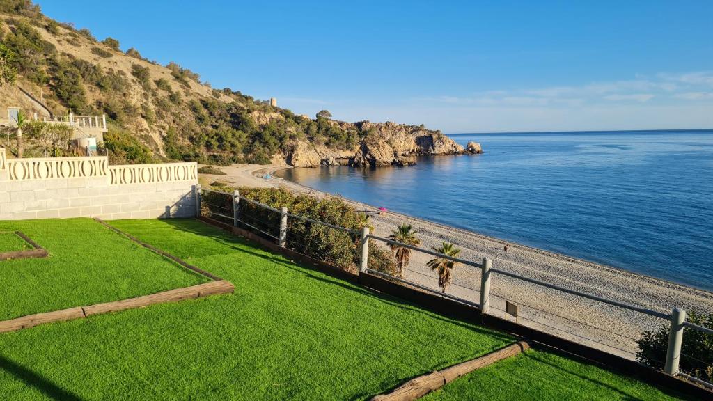 La Villa Mi Cielo Nerja Sun se encuentra en Nerja y ofrece alojamiento con aire acondicionado, piscina privada, vistas al mar y balcón. La playa de Bu
