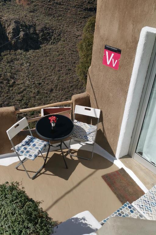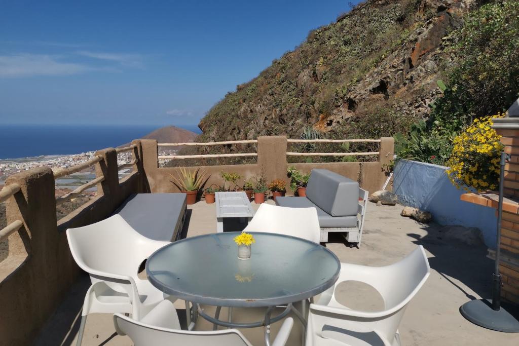 La casa cueva cuelga como un nido de golondrina en una pendiente. Particularmente cautiva por su fantástica vista al mar y su orientación suroeste. Cuando hace buen tiempo se puede ver la isla de Tenerife. Ambas habitaciones y la sala de estar se encuentran en la parte de la cueva de la casa. En el anexo se encuentran la cocina, un baño con bañera y una ventana panorámica y ducha y el aseo / lavadero independiente. Hay una pequeña terraza y una terraza en la azotea con zona de descanso y barbacoa. La casa ha sido cuidadosamente renovada y amueblada recientemente. Se tuvo cuidado para preservar el carácter original de la cueva. Hay un equipo de cocina completo con tostadora, cafetera, licuadora.