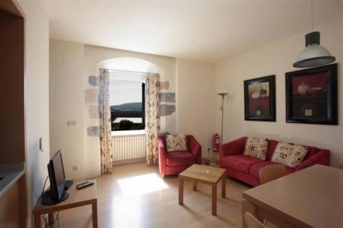 Todos los apartamentos de la Casa de los Beneficiados están decorados en tonos claros con vigas en el techo originales y disponen de salón comedor con TV y cuarto de baño con secador de pelo y artículos de aseo.