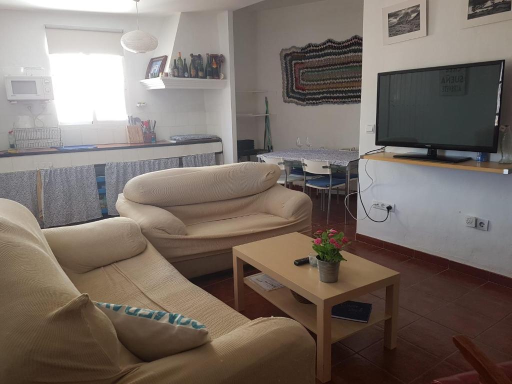 Esta casa cuenta con 3 dormitorios, sala de estar, TV de pantalla plana, cocina equipada con zona de comedor y 1 baño con ducha y lavadora.