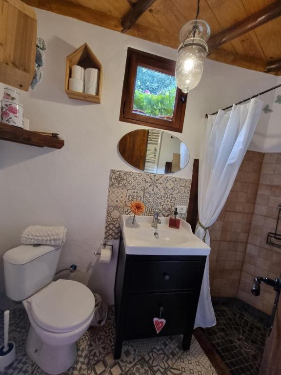 La casa rural cuenta con 1 dormitorio, 1 baño, ropa de cama, toallas, TV de pantalla plana vía satélite, zona de comedor, cocina totalmente equipada y balcón con vistas al jardín.
