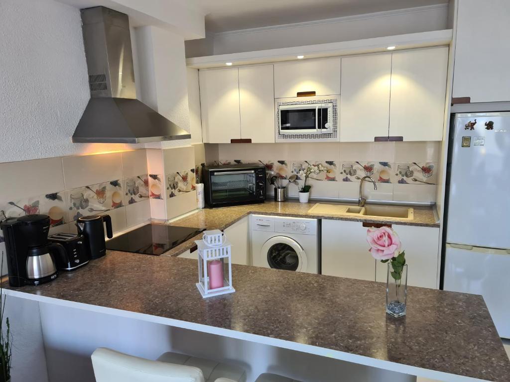 Casa Iglesia only 200 meters to the sea, balcony, sea view, air conditioning, que tiene vistas a la montaña, dispone de alojamiento con balcón y hervidor a unos 2 min a pie de Playa de Los Cristianos. Este apartamento con vistas a la ciudad y al mar también dispone de wifi gratis. Este apartamento con aire acondicionado consta de 1 dormitorio, una sala de estar, una cocina totalmente equipada con nevera y cafetera, y 1 baño con ducha y secador de pelo. Hay toallas y ropa de cama en el apartamento. El apartamento ofrece barbacoa. Cerca del alojamiento hay puntos de interés como Playa de Las Vistas, Playa de los Tarajales y Centro de convenciones Pirámide de Arona. El aeropuerto más cercano (Aeropuerto de Tenerife Sur) está a 19 km.