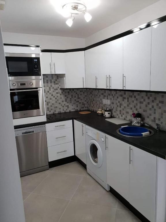 El apartamento cuenta con 2 dormitorios, TV de pantalla plana, cocina equipada con lavavajillas y microondas, lavadora y baño con ducha.