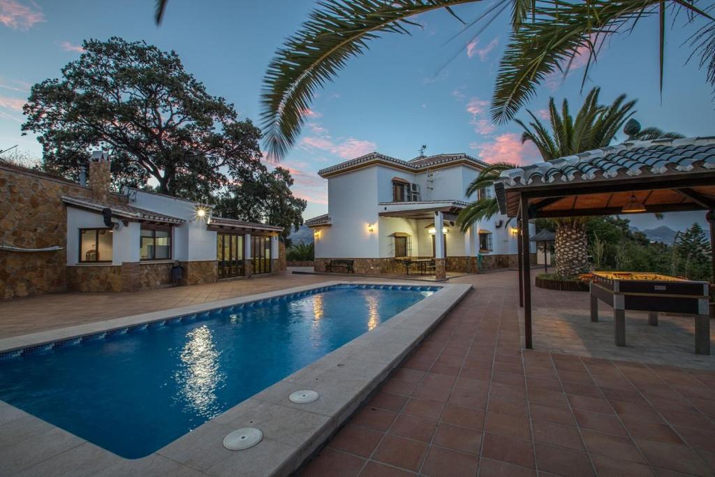 En el campo cerca de Riogordo, un pintoresco pueblo de Málaga, se encuentra la "Casa la escuela del río", que presume de maravillosas vistas de las montañas y que es el alojamiento perfecto para quienes buscan unas vacaciones relajantes. Antiguamente la casa era una escuela y la casa del profesor, por lo que todavía conserva un estilo tradicional y rústico. Consta de un salón, una cocina totalmente equipada con lavavajillas, 5 habitaciones (una con 2 camas individuales, una con una litera para 2 personas y otra con una cama de matrimonio y una cama individual) y 2 baños, por lo que en ella se pueden alojar hasta 13 personas. Entre los servicios adicionales se incluyen Wi-Fi, ventiladores, una chimenea, un televisor y una sombrilla de playa que se puede llevar a la playa. También se pueden solicitar una cuna, una trona, una bañera para bebés y un carrito. Tanto en verano como en invierno el clima es muy agradable, por lo que puedes pasar horas al aire libre tomando el sol en las terrazas privadas de la casa (cubiertas y descubiertas) o preparando deliciosas comidas en la barbacoa del porche delantero. Date un chapuzón en la piscina privada o refréscate bajo la ducha exterior en los días más calurosos del verano. Riogordo está a 15 minutos en coche (5,5 km), y allí encontrarás diversas tiendas, restaurantes, bares y cafeterías. La playa más cercana, Playa de Valle Niza, está a 39,5 km (51 minutos en coche), pero hay muchas otras playas en la costa, como la Playa Benajarafe (52 minutos en coche, 40,4 km) o El Trueno (53 minutos en coche, 41,4 km). A los entusiastas del senderismo les encantará la reserva natural Parque Natural Montes de Málaga, que está a sólo 30,7 km (42 minutos en coche) del alojamiento. Los huéspedes también pueden aprovechar para visitar Málaga (44,7 km, 56 minutos en coche) y las atracciones turísticas más famosas de la ciudad, como el Museo Picasso, el Museo Thyssen, o la Alcazaba, una antigua fortaleza morisca. Hay plazas de aparcamiento disponibles en la propiedad. La ropa de cama y las toallas están incluidas en el precio.