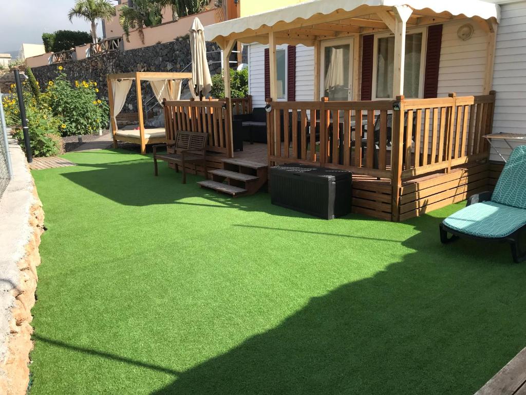 Una casita (Mobil-home) en un entorno rural ideal para descansar, desconectar y tumbarte a coger sol, además lugar estratégico para realizar senderos y visitar la isla al estar en medio entre la montaña y el mar... 15 min de playa y ocio, con servicios mínimos a 200m supermercado, bar, restaurante, plaza, iglesia... a 30min del Parque Nacional del Teide.