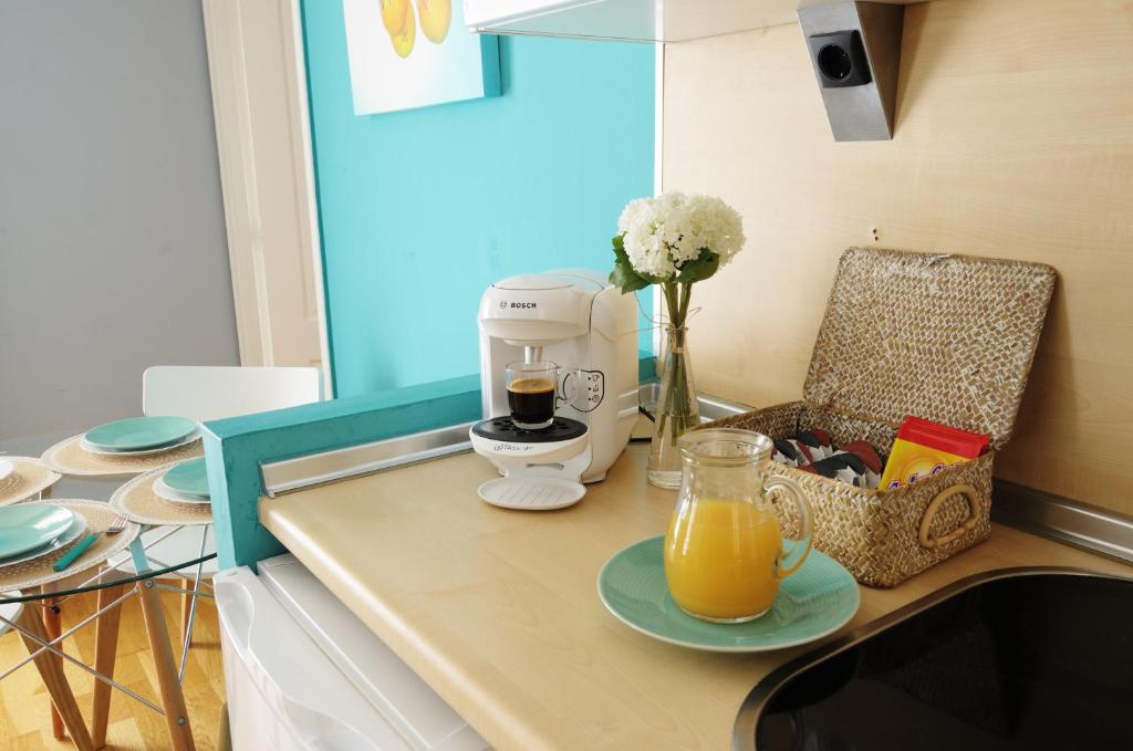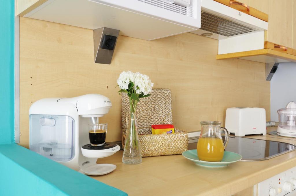 Este apartamento cuenta con 1 dormitorio, sala de estar, TV de pantalla plana, cocina equipada con zona de comedor y 1 baño con bidet y lavadora.