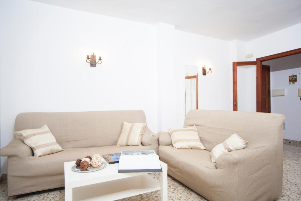 En este 2º piso, con ascensor, encuentran un fantástico rincón donde deleitarse cada mañana con un rico desayuno y desde donde puede sentirse la suave y fresca brisa marina. Además, esta terracita también les permite contemplar la cotidianidad de la gente paseando por sus calles y disfrutando, al igual que ustedes, de esos momentos de tranquilidad en sus acogedoras terrazas. En el interior, encuentran unos 85 m2 de sencillez y comodidad. En el salón-comedor, equipado con aire acondicionado, tienen dos sofás para que puedan descansar, leer un buen libro o ver la televisión, así como comer todos juntos. En la cocina, la vitrocerámica, el horno, el microondas y demás electrodomésticos y utensilios les invitan a preparar sus mejores recetas. Aquí mismo tienen la lavadora, plancha y tabla de planchar. Hay tres dormitorios, uno con cama doble, a/c, armario y espacio para una cuna y una trona; otro con dos camas individuales y armario; y el tercero con una cama individual. Por último, un baño con bañera y un radiador completan la vivienda.