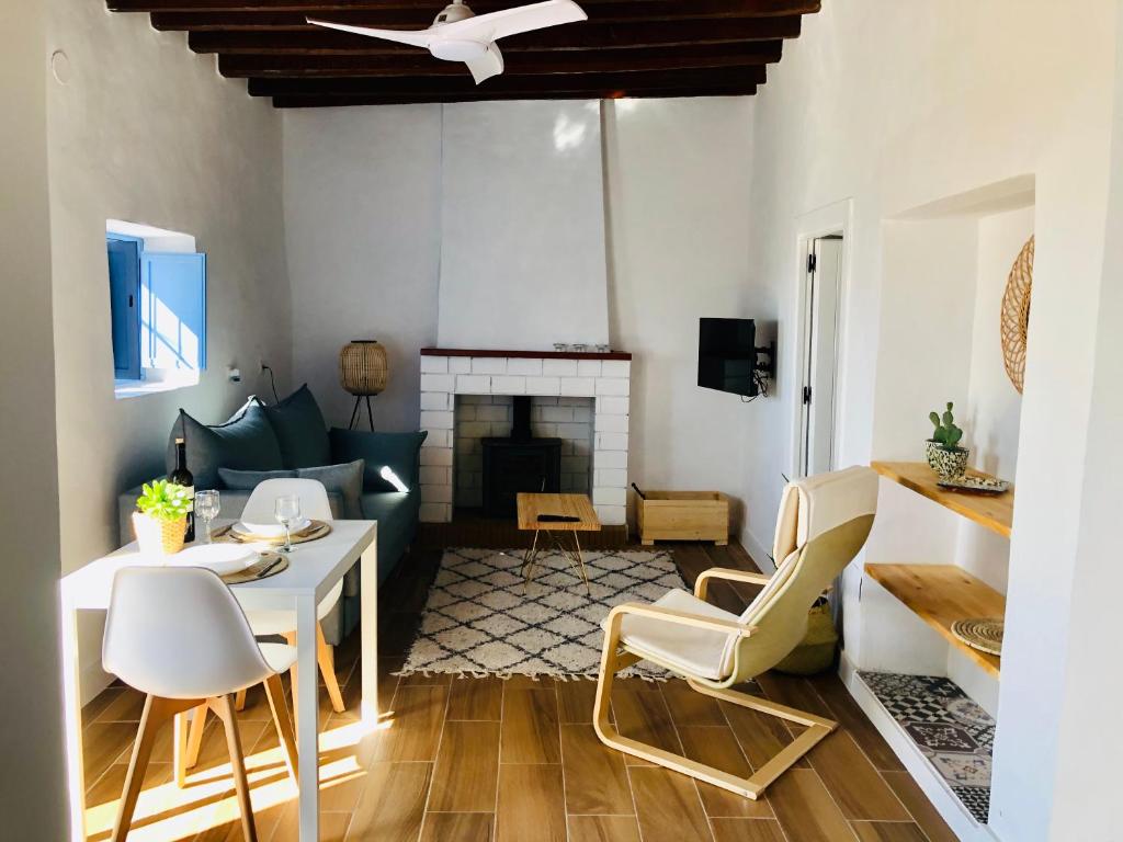 Casa con más de 100 años de historia, situada los pies del monumento más emblemático de la Villa, La Atalaya. Su principal característica es la tranquilidad de la zona y como no, su entorno, desde ella podrá admirar toda la villa y el parque natural Cabo de Gata. Damajuana está situada en el casco antiguo, por lo que el acceso es peatonal (por eso su principal virtud es la tranquilidad), la zona de aparcamiento está a unos 100-150 metros. Casa recién reformada y equipada con todo lo necesario para su estancia. ¡No podrás resistirte a fotografiarte en nuestras emblematicas chumberas y puertas azules!